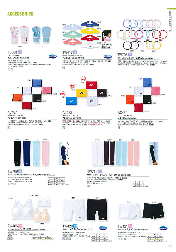 ヨネックスカタログ2010/197ページ・アクセサリー(スポーツブラ・スパッツ)