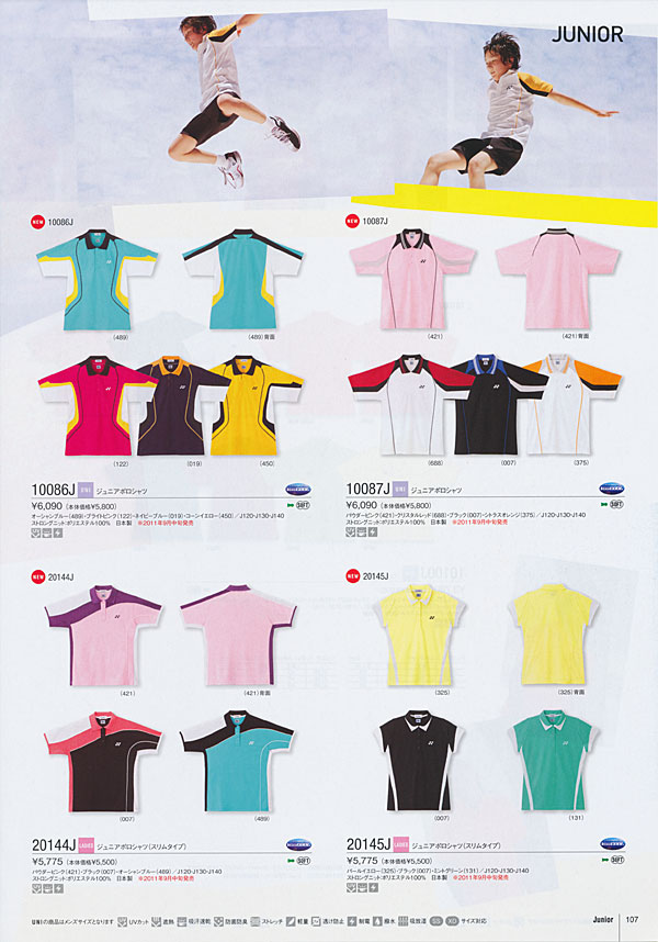 ヨネックス カタログ 2011−2012秋冬 107ページ バドミントンウエア(ジュニア) 10086J 10087J 20144J 20145J