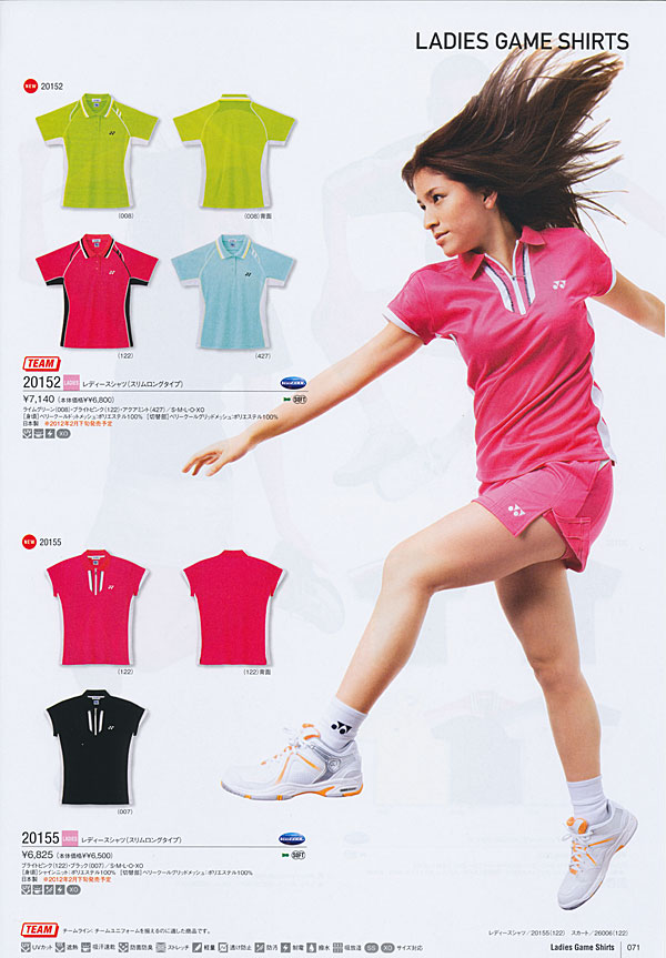 ヨネックスウエアカタログ2012/71ページ・レディースゲームシャツ・レディースシャツ20152・レディースシャツ20155